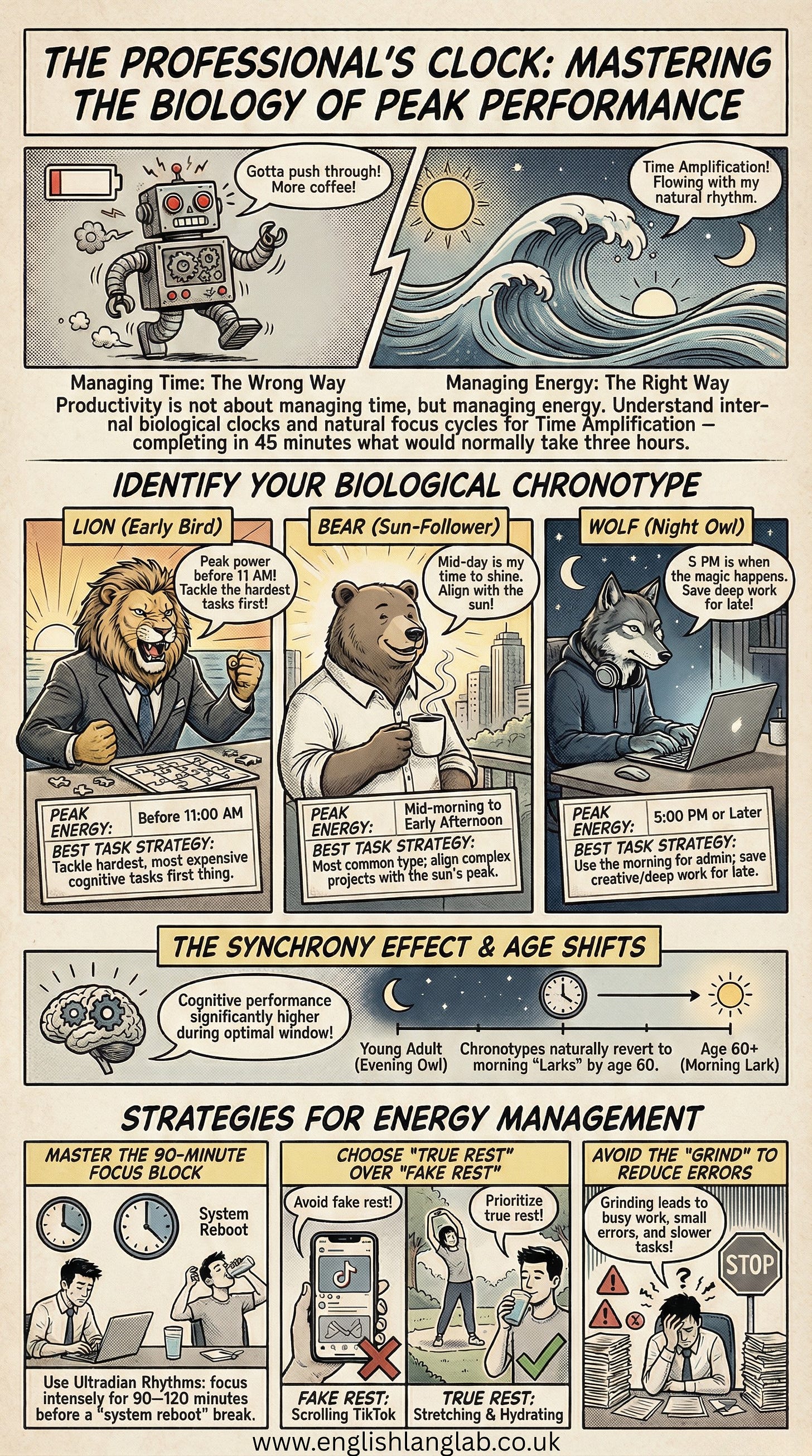 If you feel tired around 2:00 PM, you are not lazy. This is the natural low point of your circadian rhythm, your body’s main clock. A new idea called “Chronoworking” says we should stop working to a fixed time and start working with our biology. Science shows that your success depends on using your body’s rhythm, not just managing your time.
