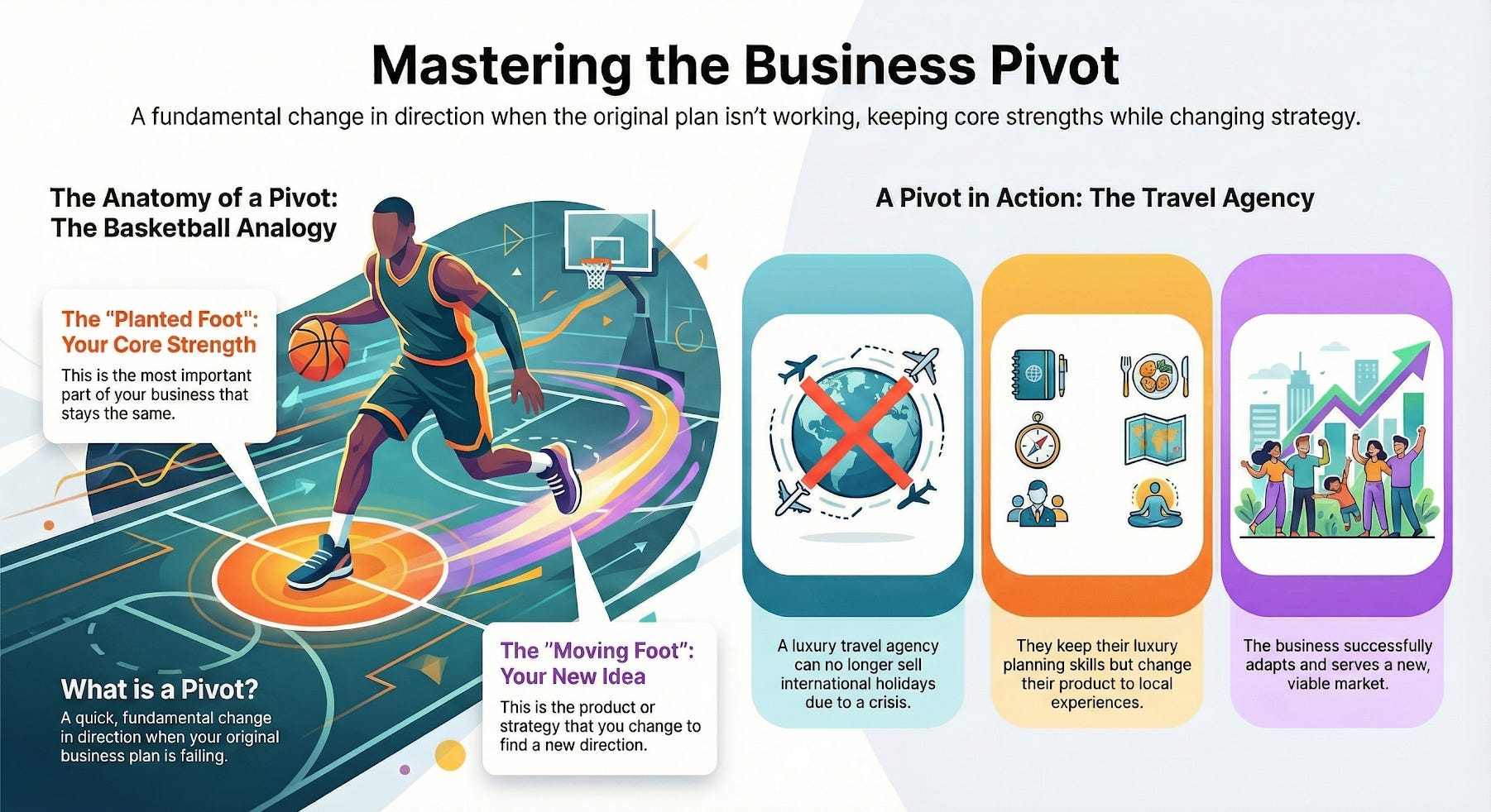 The “planted foot” is why you are strong. Changing your plan is easy. Building a strong personal base again is very hard. A successful pivot saves your skill and passion while you look for new ways to use them.